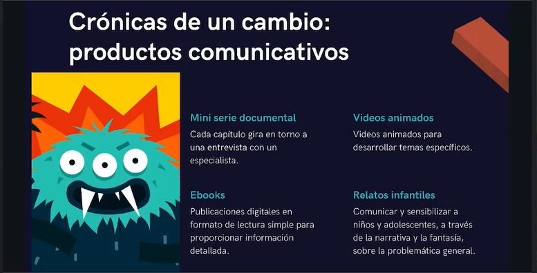 · Relatos infantiles, con el fin de comunicar y sensibilizar a niños y adolescentes a través de la narrativa y fantasía, sobre la problemática general.